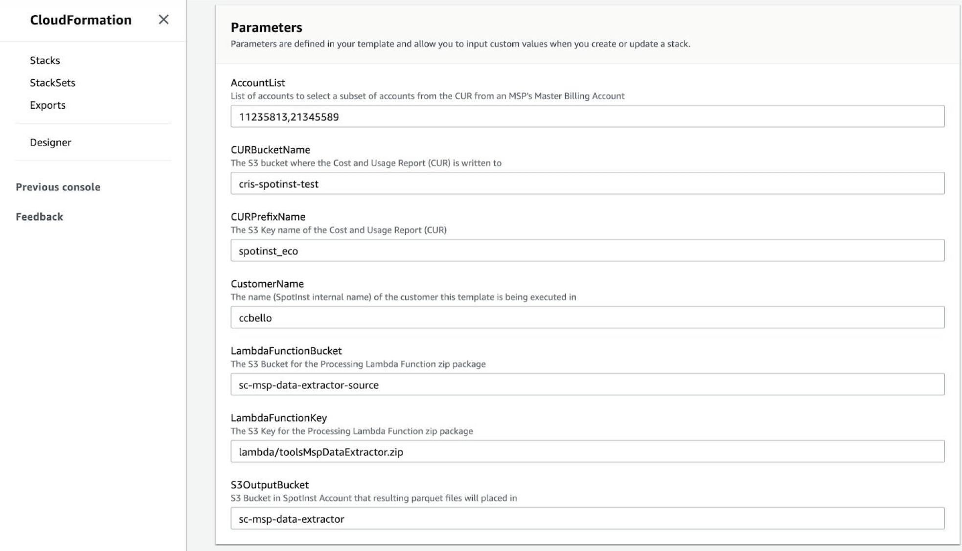 spotinst-cur-report. This name must be the same as the report name that you entered previously. - Only change the bucket's region if necessary.