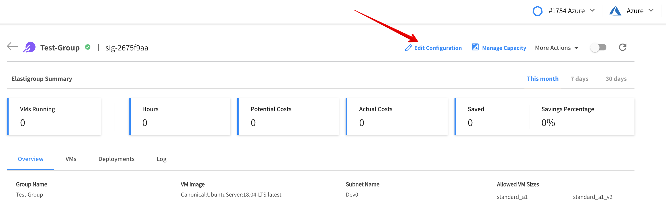Go to your stateless group in the console and click Edit Configuration.